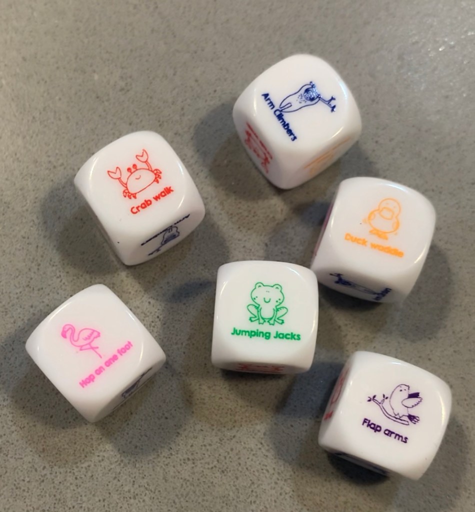 Then, a beautiful epiphany! A couple months ago, I found these animal dice in the Target dollar section. A perfect solution for some toddlers that can do exactly three yoga poses before deciding that they’d rather do their own thing.