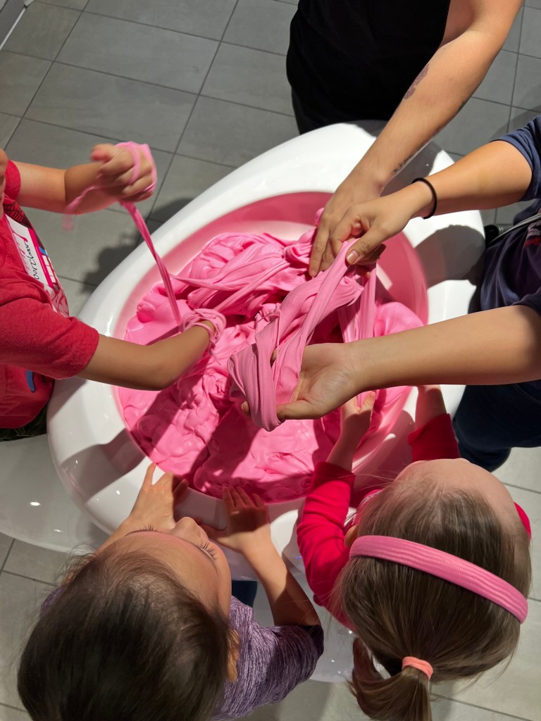 We had an awesome time. It was a great experience for our kids (4- and 5-year olds) and they are dying to go again. We would definitely pick this place for a kids’ party or a playdate. They have also have locations in New York and Chicago. Slime play is a great medium for integrating sensory. Go for it!