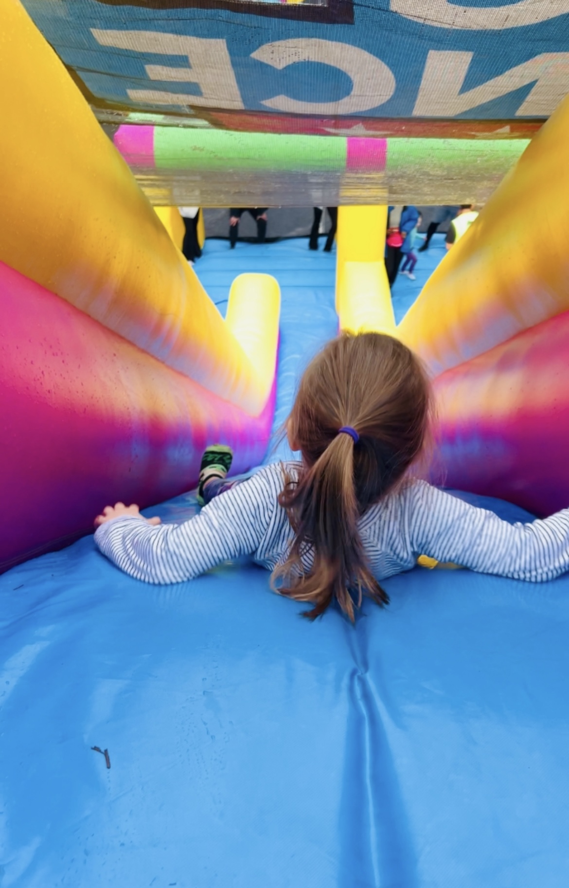 After our timed session in The World’s Biggest Bounce House, we had unlimited play for the other bounce houses. Unfortunately, my kids couldn’t keep bouncing enough to stay warm. The weather was high 50s and overcast, and with wet clothes and socks, we packed it in after about two hours when it began to sprinkle.