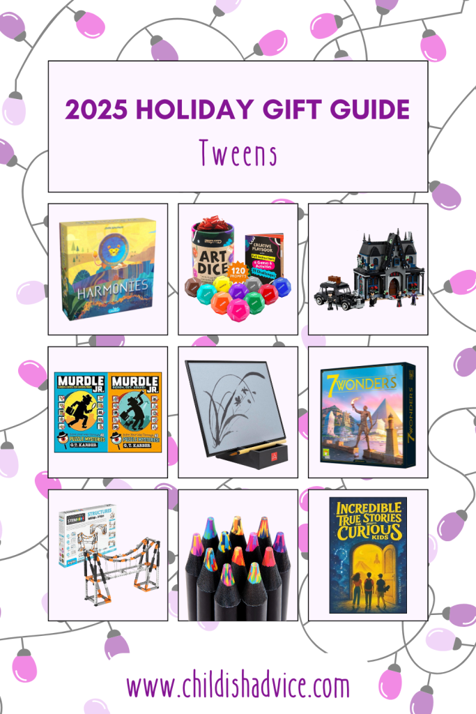 This year, weโre introducing a new gift guide category just for tweens. With all the rapid growth and change happening in our families, we know theyโre going to be firmly in this category soon. Even though it’s an awkward age group, they still have their own distinct developmental needs.